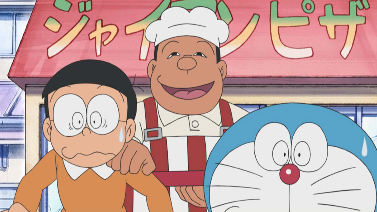 Suneo invita a Doraemon, Nobita, Shizuka y Gigante a comer una pizza preparada por un chef italiano la cuál a todos les gusta, sobre todo a Gigante quién quiere preparar una. Ya en casa Doraemon y Nobita hablan sobre lo delicioso que estaba la pizza, sin previo aviso aparece Gigante detrás de ellos diciendoles que quiere tener un restaurante de pizzas así que Doraemon saca el Set de Tienda Para Jugar para poder hacer una pizzería que incluye un robot instructor, pero Gigante no sigue los consejos del robot y termina haciendo pizzas incomibles que Doraemon y Nobita tienen que repartir.