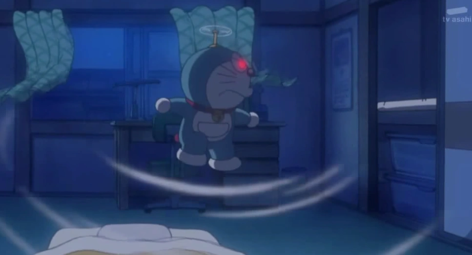 Quay về nhà, cậu cho Nobita biết về mọi thứ liên quan đến cậu. Nobita đã suy nghĩ cậu không phải là một tên Robot xấu xa mà cậu luôn nghĩ theo một cách lạc quan. Cậu cảm thấy rất tức giận và to tiếng với Nobita mà quên mình là Doraemon.