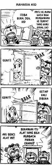 Box 1: Doraemon: Hey Kid! Please open this! Wan Dora: Anywhere Door can brings you whereever you want. Box 2: Dorami: Pervert! Box 3: Dorami: Pervert!! Kid: Every time opened.... Box 4: