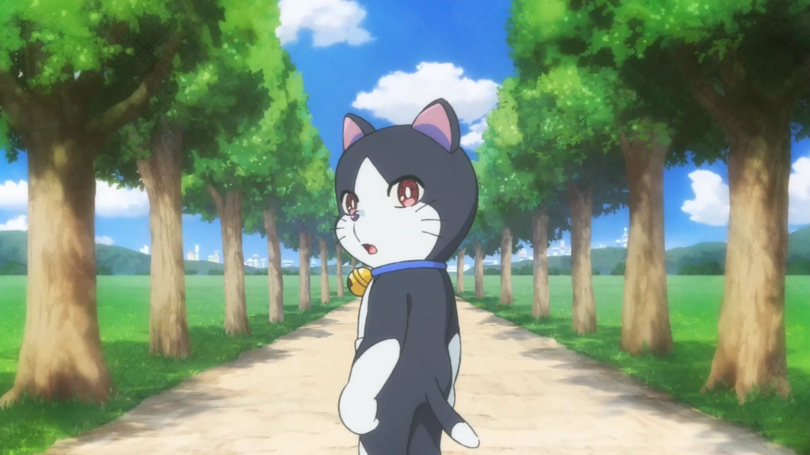 Sonya is a perfect cat-type robot floating in the sky where everyone can live happily and everything is perfect [Paradapia]. He protects the safety of the people of the city, and at first attacks Doraemon and the others, thinking they were enemies, but gradually they break down and develop friendship. Sonya makes friends with Doraemon and others. However, things change when Marimba appears and tells the truth. At first, Nobita does not believe what Hanna and Marimba say, but then he believes it. Doraemon, Nobita, and Marimba become invisible when looking at the airship. However, it turns out that it was not repaired as Sonya claimed. The trio begins repairing the time airship. However, Nobita accidentally slips and falls to the ground. Sonya goes to the time airship upon the order of the Three Sages. Doraemon, Nobita, and Marimba immediately open the time portal and goes to the future. But Sonya and his patrol team were after them. Sonya doesn't want to hit Doraemon and the others at first, but is forced to shoot the Three Sages, as they threaten to send him to scrap. The trio was brought back to paradapia. Nobita was brainwashed. The three sages ask Nobita to turn Doraemon into an insect. Nobita does not do this, so the Three Sages force Sonya. Later, when Doctor Ray appears, Sonya chooses his side and switches to the Doraemons' side. Doctor Ray puts paradapia into free fall mode and escapes. While everyone is being evacuated, Sonya finds his pocket. After everyone is released, Sonya tries to shrink Paradapia. After Doraemon returns to normal, Doraemon and the others go to help Sonya. Doraemon and the others decide to trap Paradapia in a 4D bag, but Paradapia would explode in the bag. Sonya blows up Doraemon and the others' bamboo hoppers and sacrifices himself. A few days later, Doraemon and the others find Sonya's memory and go to the future. Doraemon reveals to the others that Sonya is in a new body.