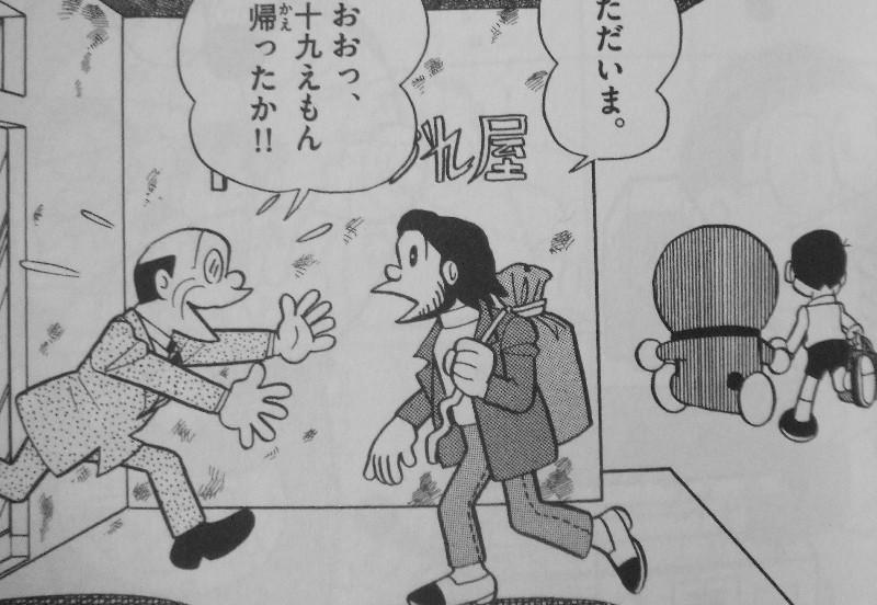 他出現於〈重建破舊的旅館〉,經營著破舊的稻田屋旅館,因沒錢而常被斷水斷電,且兒子十九衛門因被他罵而離家出走,他把離家出走而剛好在躲雨的大雄強制拉進去住,後來才發現他沒錢,最後大雄和哆啦A夢幫助他吸引和招待客人,而來來貓剛好也把十九衛門給找了回來。