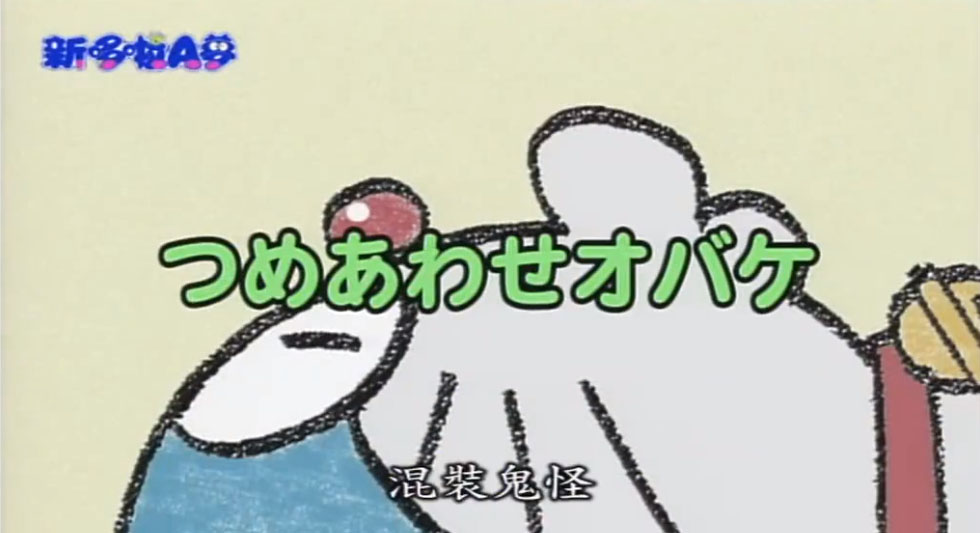 - 小夫用來嚇大雄的道具是幽靈,胖虎也是披上畫好臉的被單扮幽靈。