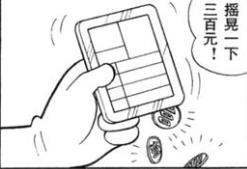 为一张由恶魔掌管的卡片,只要不断摇出钱来(一次300元),主人就会变小(一次1公分[厘米]),直到消失。但不是故意摇晃就不会出现钱。即使别人使用了,也会算到主人头上。