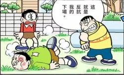 胖虎揍了一个同学,他问大雄是谁不对。大雄想说胖虎不对,却又改口说对。