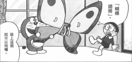 大雄在哆啦A梦的道具“蝴蝶翅膀”的帮助下,和哆啦A梦,靜香变成蝴蝶。不过胖虎以为真有新品种蝴蝶就去抓大雄。