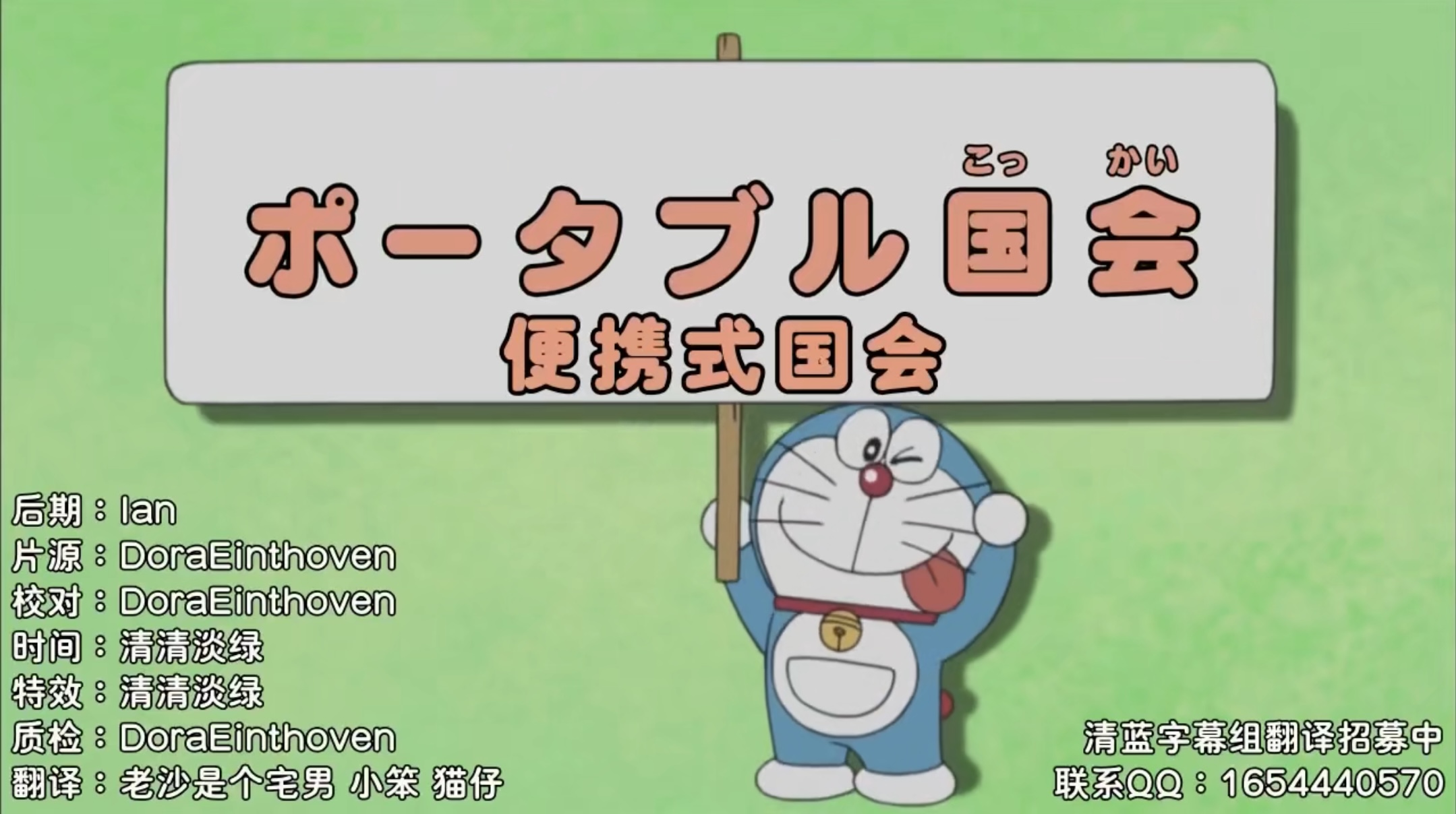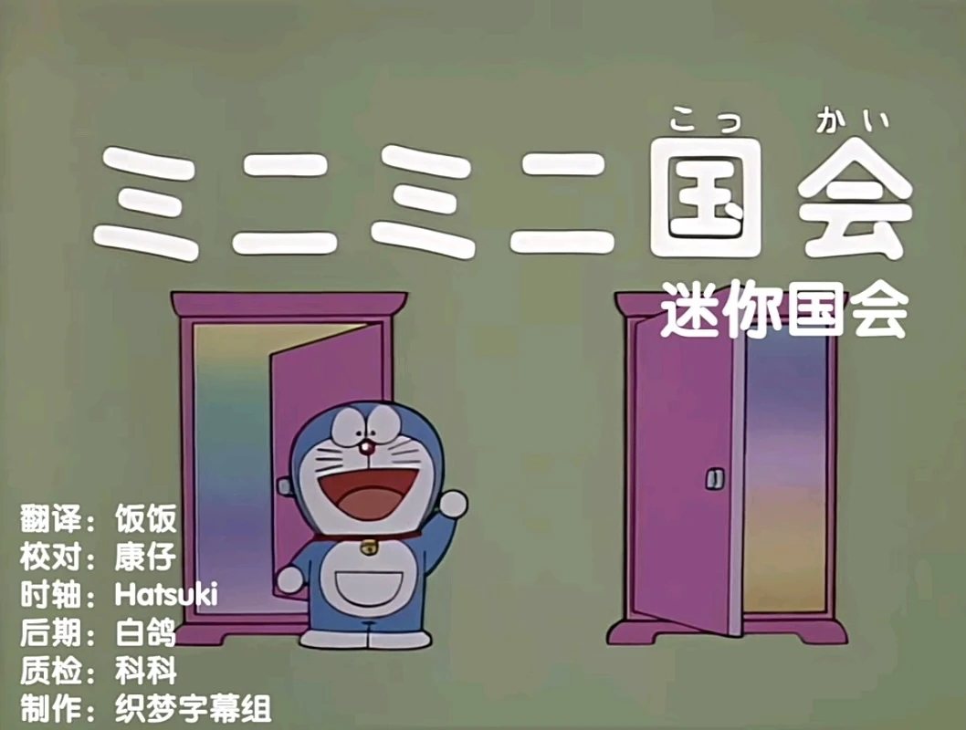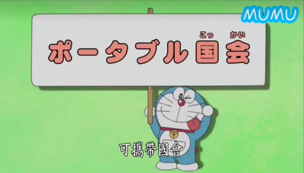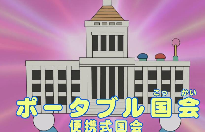 大山版於1979年10月26日播出,總167話。1980年4月27日重播,總第56集(R167),為當日第一話。台灣哆啦A夢時期譯作〈迷你型國會〉並於2001年11月6日首播,上海李晔版與香港翡翠台譯作〈手提式國會〉。